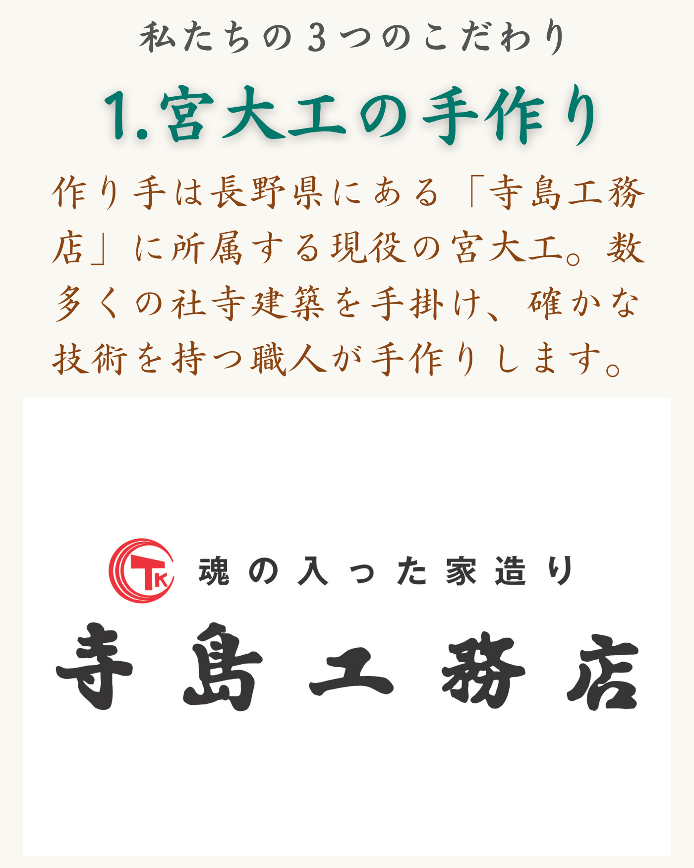 作り手は長野県にある「寺島工務店」に所属する現役の宮大工です。寺島工務店は1963年創業の歴史ある工務店で、これまでに数多くの社寺建築を手がけています。信州・安曇野で「日本アルプスの総鎮守」として知られる穂高神社の拝殿・神楽殿の建替えなどに携わってきました。