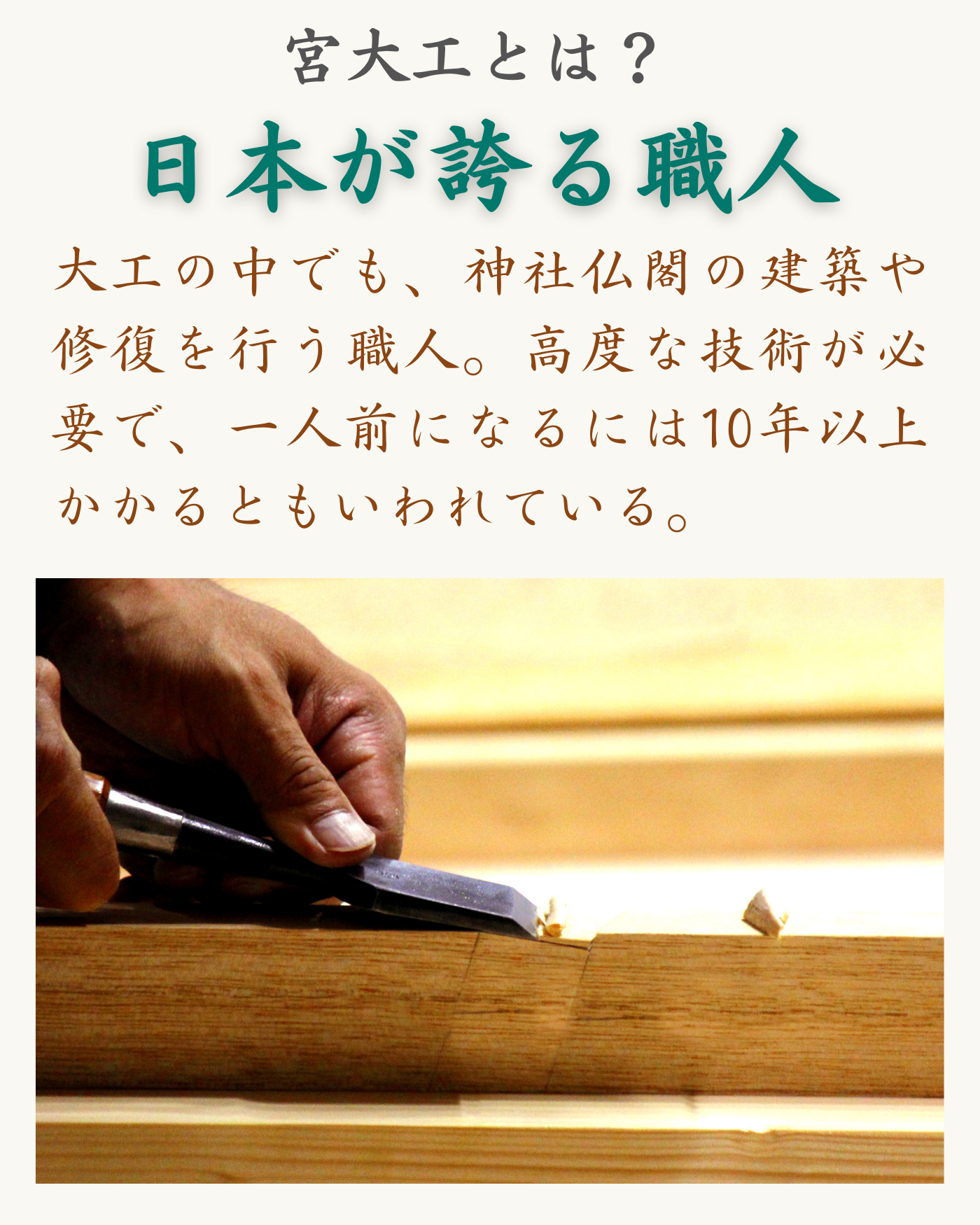 千年以上続く、宮大工の伝統技術を