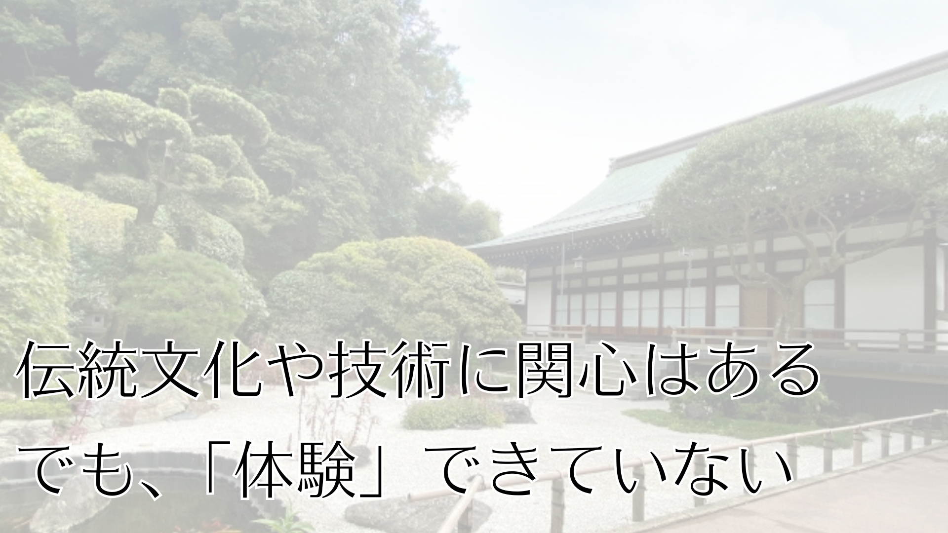 伝統文化や技術の継承という問題があるなかで、関心がある方は多いのではないでしょうか。テレビやネットから伝統文化や技術について情報を得たり、自分で調べたりすることがあるかもしれません。しかし、それはあくまで「情報として知る」ということであり、実際に「体験」することは少ないと思います。